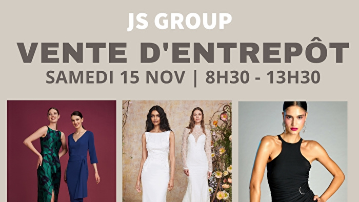 Vente d’entrepôt JS Group, 1 jour seulement! Découvrez nos collections designer à prix incroyables. Robes de soirée, mère de la mariée, robes de bal & sportswear.