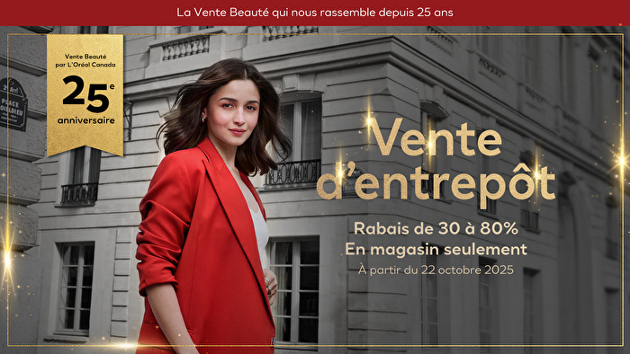 La Vente Beauté célèbre ses 25 ans! Profitez de rabais SUPPLÉMENTAIRES (au-delà du 30-80% habituels) Biotherm, Redken, Giorgio Armani, YSL, Maybelline, Valentino, Garnier, Lancôme, Prada & plus vous attendent!