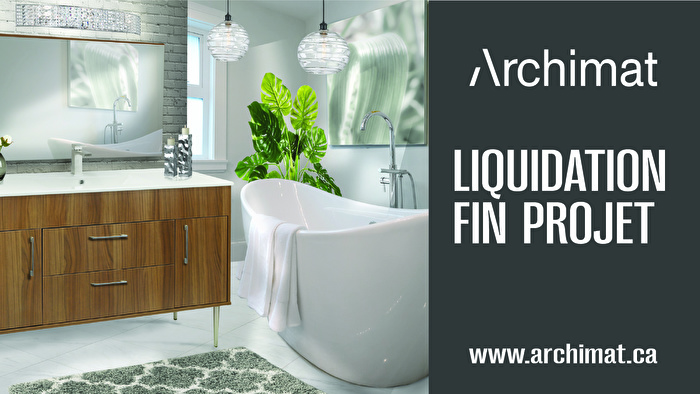 Liquidation fin de projet : hottes, vanités, bains, miroirs, céramique et planchers vinyle. Jusqu’à 70% de rabais! Grande sélection, quantités limitées. Dépêchez-vous!