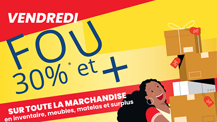 Du 28 au 30 novembre, profitez de 30% de rabais et plus* sur toute la marchandise en inventaire, meubles, matelas et plus*! Achetez plus et économisez plus sur certains appareils de cuisine et buanderie GE et profile.**