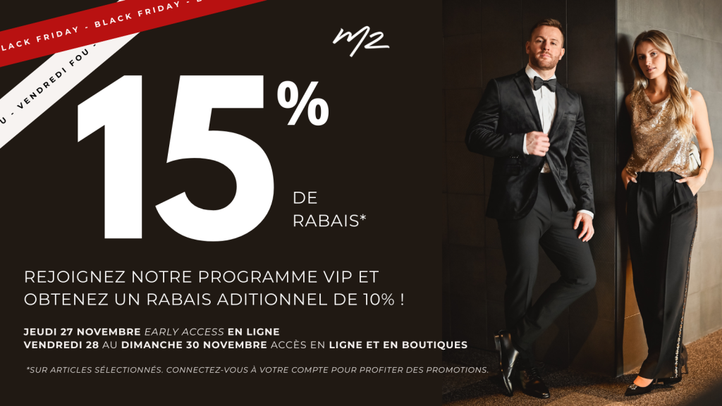 Profitez des plus grandes soldes de l’année chez M2! Obtenez 15% de rabais sur les collections Automne-Hiver 2025. Magasinez les plus grandes marques et dénichez vos pièces préférées à petit prix !
