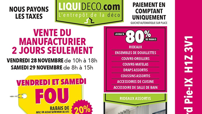 Vente du manufacturier – 2 jours seulement. Économisez jusqu’à 80% sur rideaux, ensembles de douillettes, couvre-oreillers, couvre-matelas, draps assortis, coussins, accessoires de cuisine & salle de bain.