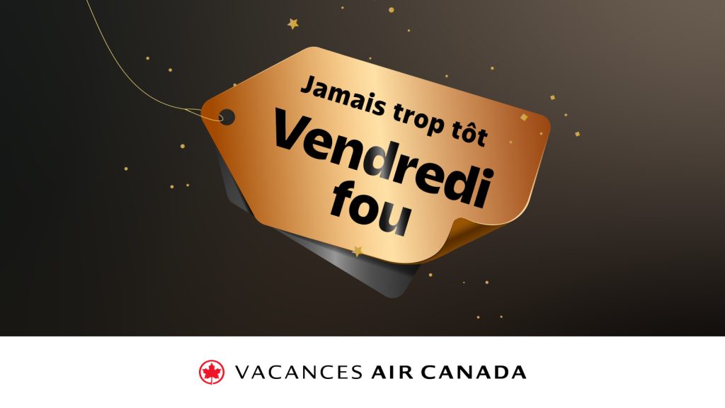 Profitez des offres anticipées du Vendredi fou avec Vacances Air Canadaᴹᴰ! Économisez jusqu’à 40 %* sur les forfaits sélectionnés au soleil et obtenez un rabais de 500 $ par duo* sur les circuits sélectionnés en Europe, en Asie, en Océanie et plus.