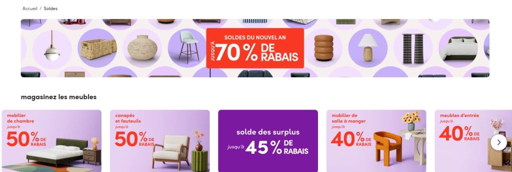 Wayfair en soldes! 🛋️ Jusqu’à -70% sur meubles, déco, tapis, literie, organisation et plus. Livraison rapide et gratuite*. Transformez votre maison sans vider votre portefeuille!